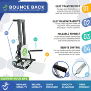The Bounce Back Fall Recovery Lift provides a safe, controlled way to move from floor level toward an upright position using a powered lifting seat. Instead of struggling or waiting for assistance, the user is supported as the device gently elevates them.